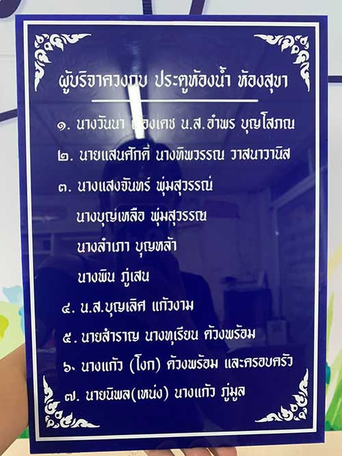 การทำป้ายขอบคุณผู้บริจาคเงินให้วัดไม่เพียงแต่เป็นการแสดงความ gratitude ต่อผู้มีจิตศรัทธา แต่ยังเป็นศิลปะที่สะท้อนความหมายทางจิตวิญญาณและวัฒนธรรมไทยอันงดงาม ป้ายที่ดีควรมีการออกแบบที่เรียบง่ายแต่สง่างาม ใช้สีสันที่สื่อถึงความสงบ เช่น โทนสีทอง น้ำเงิน หรือขาว ซึ่งเป็นสีที่เกี่ยวข้องกับวัดและพุทธศาสนา ตัวอย่างเช่น ป้ายที่ใช้ตัวอักษรลายไทยสวยงามพร้อมประดับด้วยลวดลายดอกบัวหรือพวงมาลัยที่สื่อถึงความบริสุทธิ์และความเคารพ อาจเพิ่มภาพกราฟิกของพระพุทธรูปหรือเจดีย์เล็กๆ เพื่อเสริมความหมายทางศาสนา การจัดวางข้อความควรชัดเจน อ่านง่าย ระบุชื่อผู้บริจาคและจำนวนเงินอย่างสุภาพ พร้อมคำขอบคุณที่อบอุ่น เช่น “วัด… ขอขอบพระคุณท่าน… ที่ร่วมสมทบทุนสร้าง… ขอให้ท่านและครอบครัวเจริญด้วยความสุขและสันติ” นอกจากนี้ การเลือกวัสดุอย่างอะคริลิกใสหรือสแตนเลสขัดเงาจะเพิ่มความทนทานและความทันสมัยให้ป้ายดูโดดเด่นเมื่อติดตั้งบริเวณศาลาวัดหรือจุดที่มองเห็นได้ชัดเจน ป้ายที่ออกแบบอย่างพิถีพิถันเหล่านี้ไม่เพียงเป็นการบันทึกความดี แต่ยังเป็นแรงบันดาลใจให้ผู้อื่นร่วมทำบุญ สร้างความผูกพันระหว่างชุมชนและวัดอย่างยั่งยืน